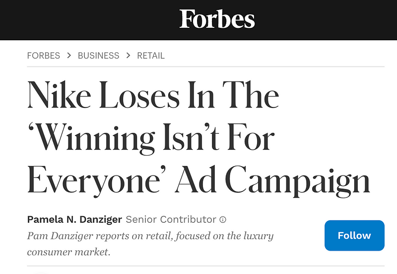 https://www.forbes.com/sites/pamdanziger/2024/08/16/nike-fails-in-the-winning-isnt-for-everyone-ad-campaign/