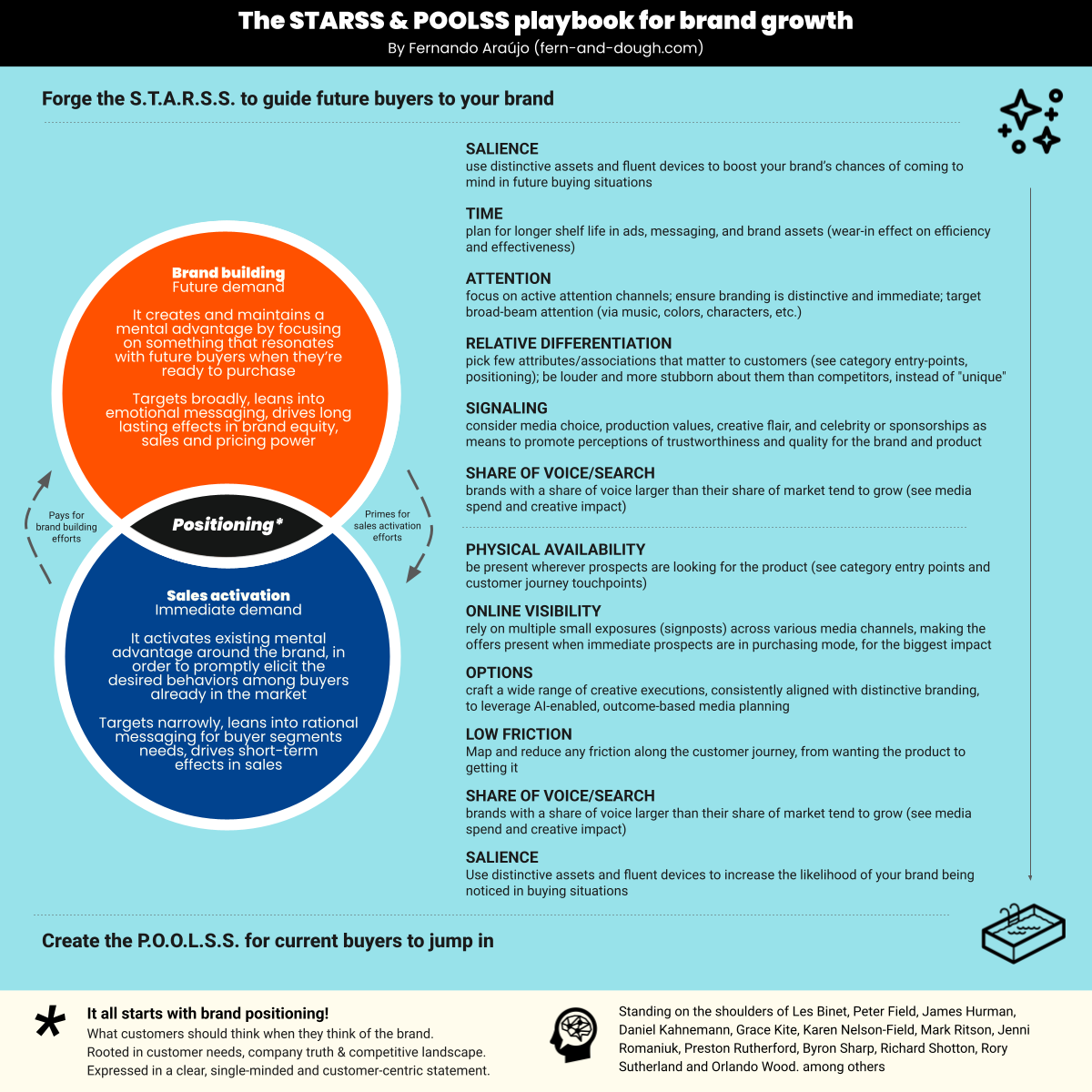 I put together the STARSS & POOLSS playbook as a way to make sense of it all—on one page. A simple, structured way to align brand positioning, brand building, and sales activation (The Long & Short of It, baby!) with today’s best practices in effectiveness.